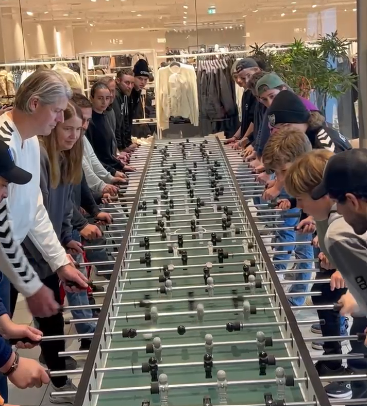Die Mercado Geburtstagswoche hält uns aktuell gut auf Trab. Bereits der Montag war ein Auftakt nach Maß. Rund 60 geladene Gäste waren dabei, als Centermanager Sven Ebert und der neue Leiter des Bezirksamts Altona, Sebastian Kloth, feierlich die große Geburtstagstorte anschnitten. Unter den Gästen waren wichtige Akteure des Bezirks, unter anderem Vertretende der IG Große Bergstraße, Unser Altona, IG Blankenese, Altonale, Elbtalaue, IKEA, Media Markt und Teutonia 05. Am Dienstag wurde dann mit prominenter sportlicher Unterstützung durch Altona 93- Sportchef Richard Golz und Mannschaftskapitän Pascal El-Nemr am Riesen-Kickertisch das Stadtderby FC St. Pauli/Altona 93 vs. HSV ausgetragen. 11 Spieler nahmen dabei pro Tischseite am Match teil, die Startplätze für beide Teams wurden zuvor über reichweitenstarke Medienkooperationen und Social Media-Accounts an begeisterte Fußballfans der Hansestadt vergeben. Die Stimmung war großartig, auf beiden Seiten des Tischs wurde mit vollem Einsatz gespielt – und am Ende mit einem recht deutlichen Sieg (14:3) für die Tischkicker von FC St. Pauli und Altona 93.