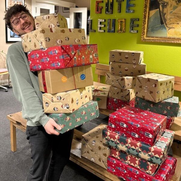 Als Team der Gute Leude Fabrik haben wir gemeinsam Schuhkartons mit Geschenken gefüllt für die Sammelaktion der St. Pauli Kirche. Jede Box wurde von unseren Mitarbeitenden gepackt mit Zeit, Gedanken und kleinen Dingen, die Freude machen sollen. Für Menschen, die gerade nicht auf der Sonnenseite stehen. Weil wir glauben, dass man etwas zurückgeben sollte und Verantwortung auch im Kleinen beginnt.